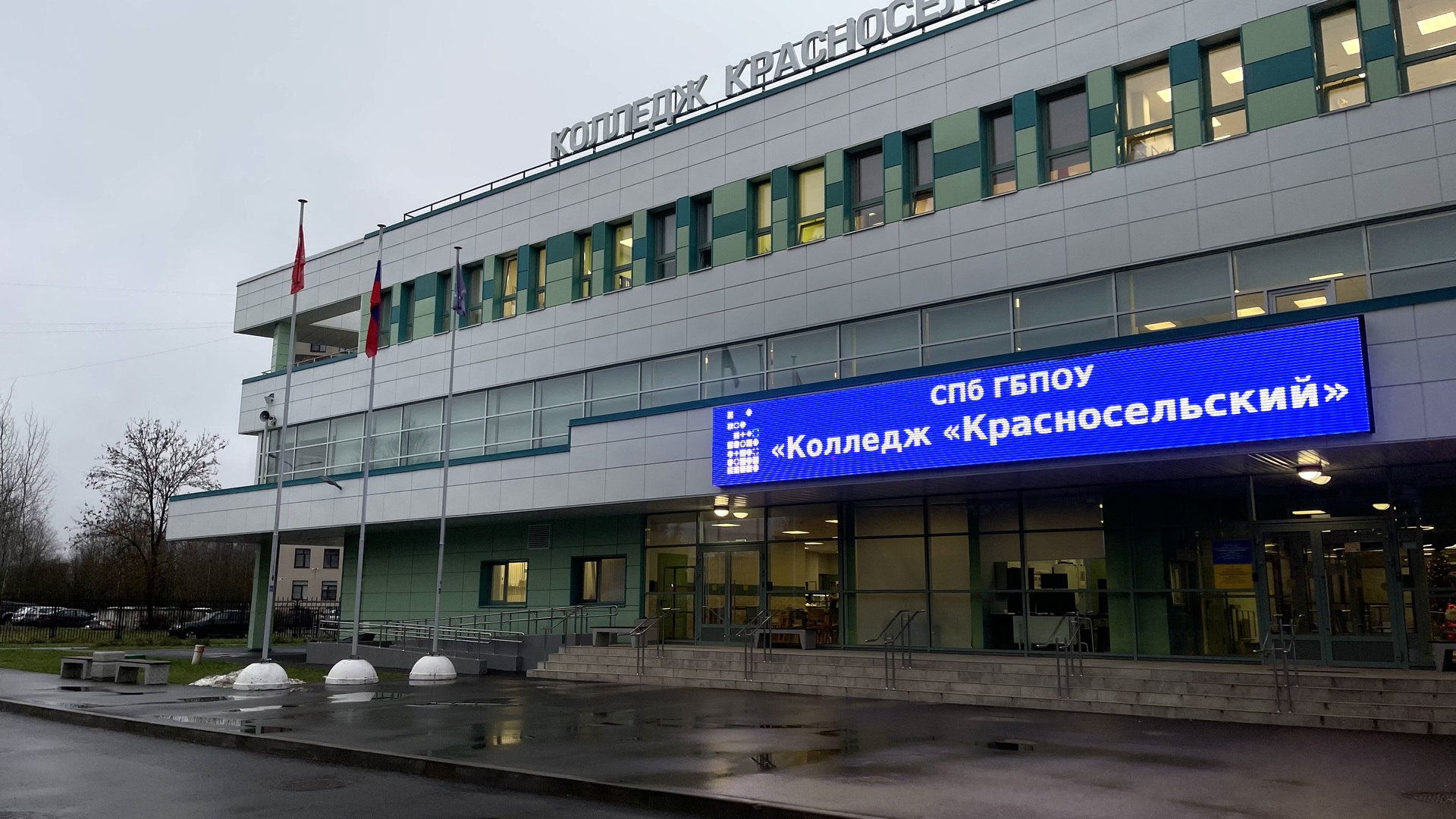 Входная группа колледжа получила яркое и современное оформление. Теперь гостей и студентов встречает стильный светодиодный экран, который не только формирует солидный имидж учебного заведения, но и служит современной информационной площадкой для размещения важных объявлений и анонсов событий.