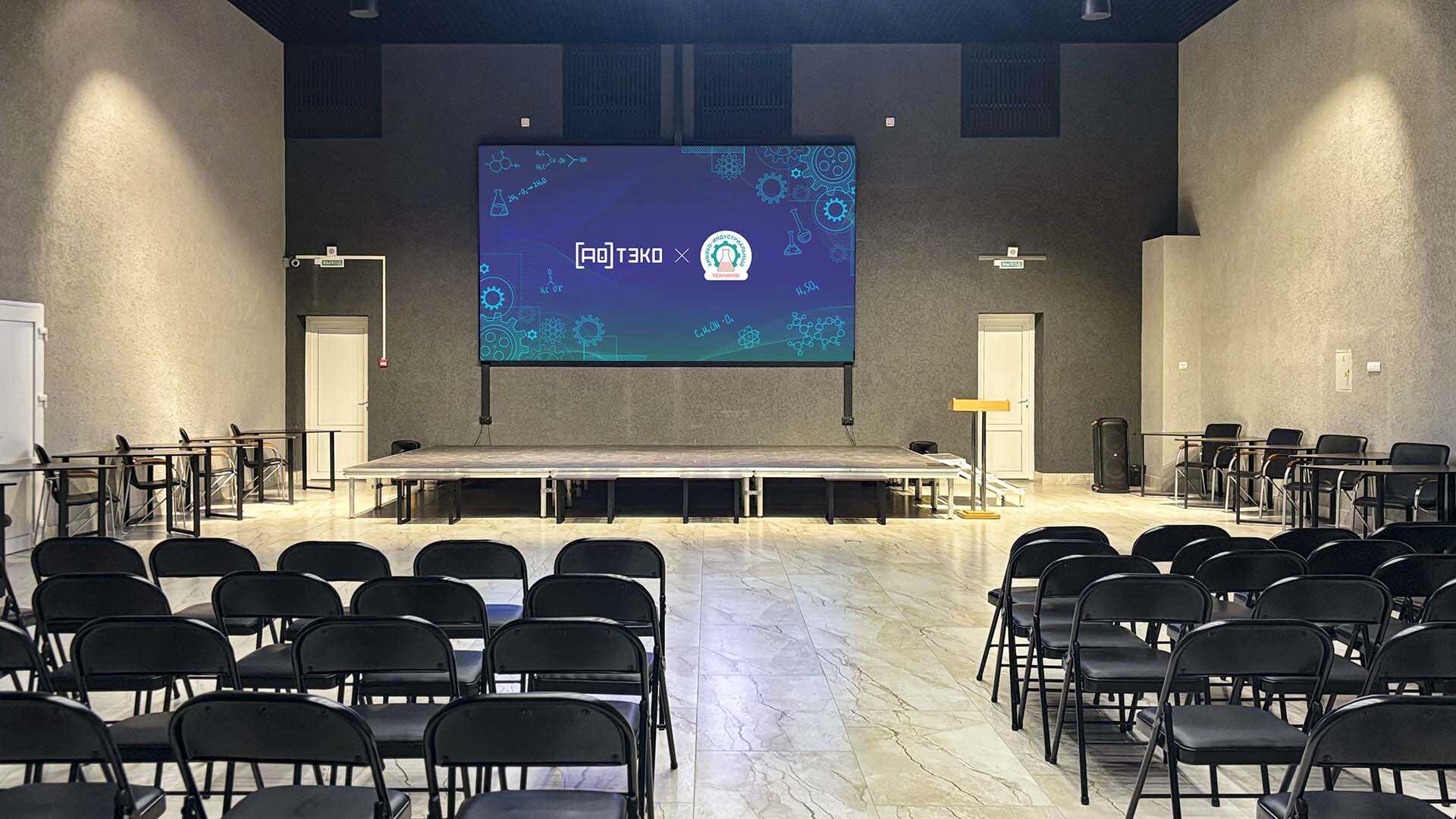 В рамках проекта был оборудован современный лекторий для проведения конференций, лекций и презентаций, оформленный в едином стиле с другими помещениями.